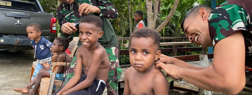 Satgas Yonif 512/QY Berikan Layanan Pangkas Rambut Gratis untuk Anak-Anak