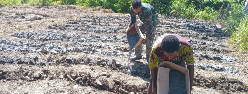Satgas Yonif 512/QY dan Warga Papua Sulap Abu Dapur Jadi Pupuk Alami untuk Lahan Jagung