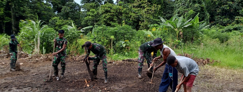 Kegiatan ini dilakukan bersama warga setempat sebagai bagian dari program teritorial Satgas yang tidak hanya menjaga wilayah perbatasan, tetapi juga membantu menggerakkan potensi pertanian lokal yang selama ini belum tergarap optimal.