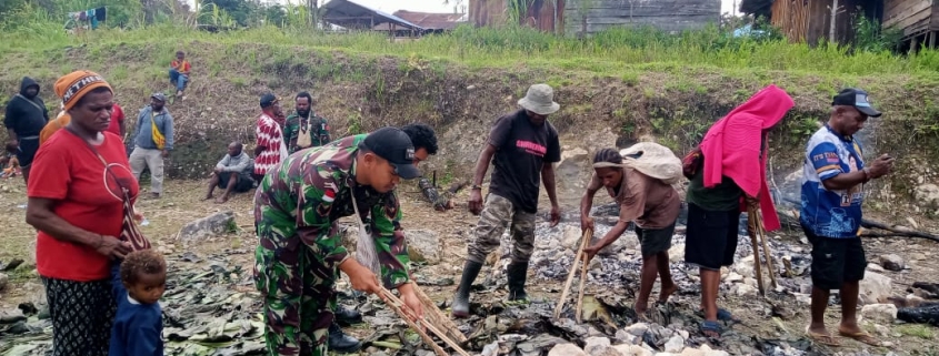 Satgas Yonif 512/QY Gelar Bakar Batu untuk Pererat Hubungan dengan Masyarakat
