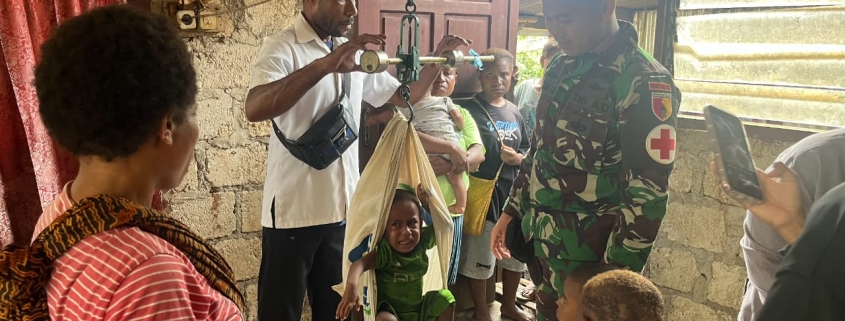 Kabupaten Keerom, Papua – Dalam rangka meningkatkan kesehatan balita di wilayah perbatasan, Satgas Yonif 512/QY menggelar kegiatan Posyandu bersama tenaga kesehatan Puskesmas setempat di Kampung Yuruf, Distrik Yaffi. Senin, (16/12/2024).