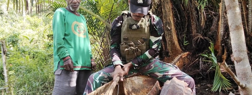 Satgas Yonif 512/QY Membantu Warga Keerom Mengolah Sagu sebagai Simbol Kehidupan