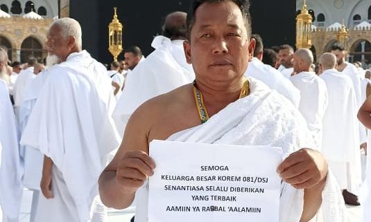 Meski tengah fokus dalam ibadah umrahnya, pria yang kesehariannya berdinas di Korem 081/DSJ itu juga tak lupa mendoakan keluarga besar dari satuan yang dicintainya.