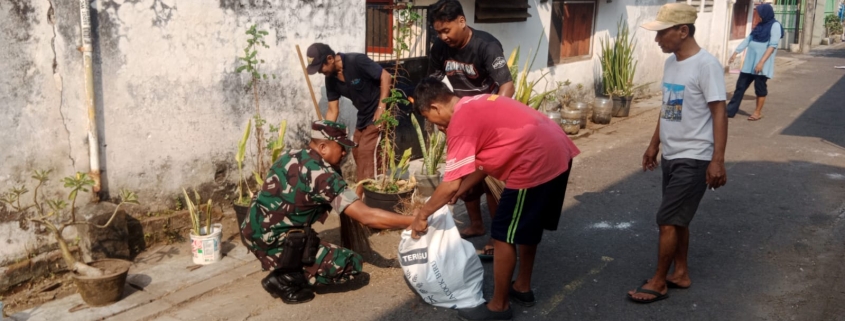 Surabaya — Dalam rangka menyambut Hari Ulang Tahun (HUT) Kemerdekaan Republik Indonesia ke-80 tahun 2025, Bintara Pembina Desa (Babinsa) Kelurahan Pucang Sewu, Koramil 0830-09/Gubeng, Serda Suyono, melaksanakan kegiatan pembinaan teritorial melalui kerja bakti bersama warga.