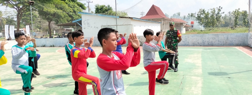 Senam Pagi di SDN Moncek Barat, Sertu Khairul Ajak Siswa Sehat dan Ceria