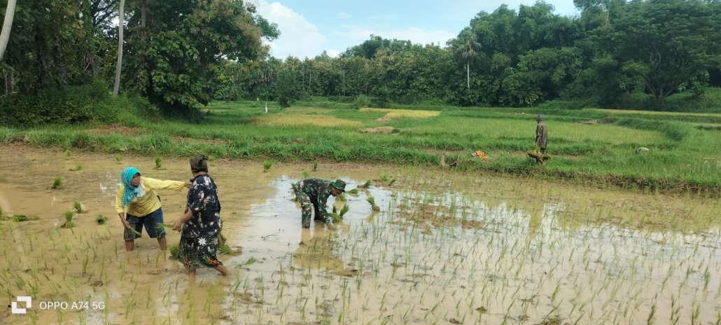 Sampang,- Serka Nanang, Babinsa dari Koramil 0828/03 Omben, melaksanakan kegiatan pendampingan kepada Kelompok Tani Sekar Tani dalam rangka penanaman padi di Desa Kebunsareh, Kecamatan Omben.