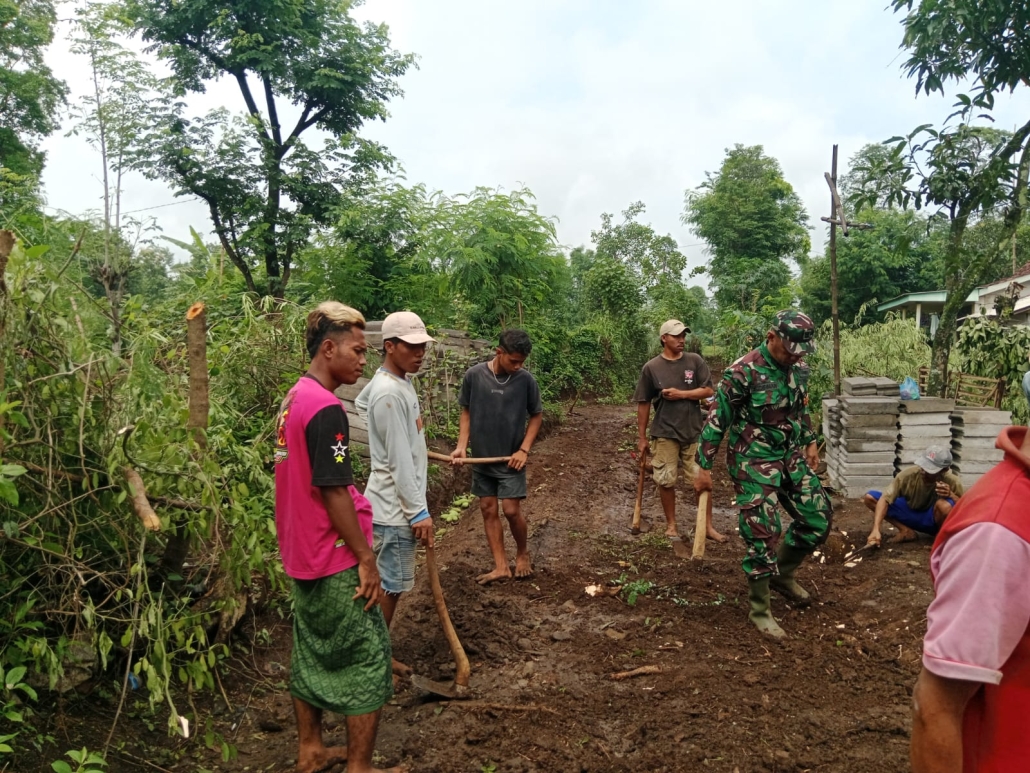 Sinergi TNI dan Masyarakat dalam Kerja Bakti Membersihkan Jalan Desa Wonorejo Secara Bersama