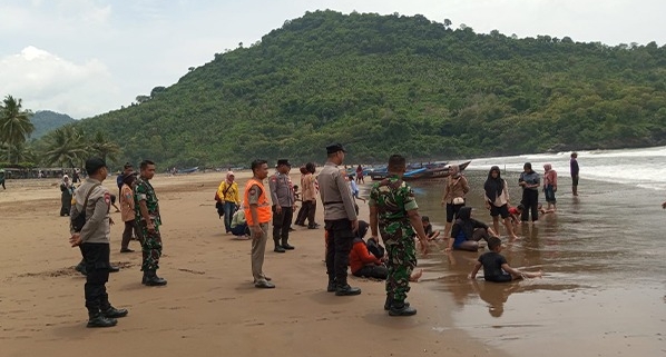 Sejak pagi, aparat keamanan tampak menyatu dengan aktivitas wisatawan yang memadati Pantai Konang. Pantai di pesisir selatan ini dikenal memiliki panorama menawan dan ombak khas Samudera Hindia yang menjadi daya tarik utama wisatawan terutama pada akhir pekan.