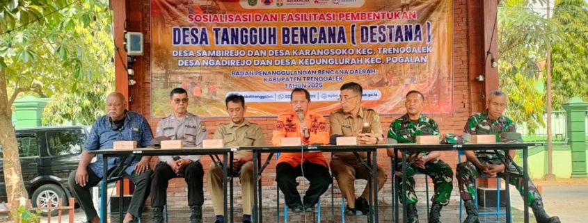 Trenggalek – Upaya membangun masyarakat tangguh terhadap ancaman bencana terus diperkuat melalui sinergi TNI, Polri, dan BPBD Kabupaten Trenggalek. Kodim 0806/Trenggalek bersama Polres Trenggalek dan BPBD menggelar Sosialisasi dan Fasilitasi Pembentukan Desa Tangguh Bencana di kawasan Pujasera Desa Sambirejo, Kecamatan Trenggalek, Selasa (14/10/2025).