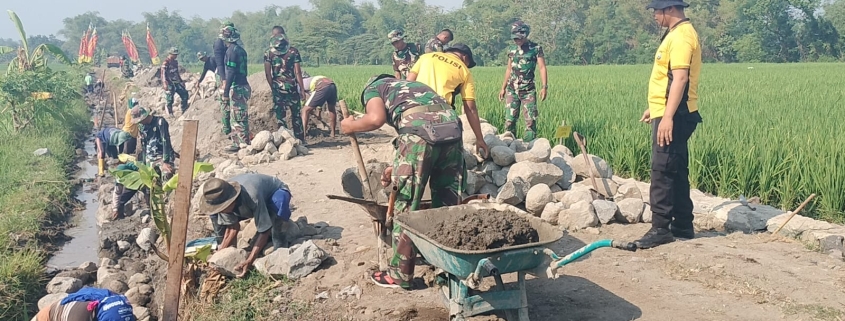 Sinergitas TNI-Polri dan Warga Mojokerto Wujudkan Pembangunan Tanggul Penahan Tanah Melalui TMMD ke-126