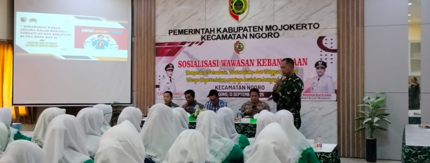 Mojokerto, – Upaya memperkuat persatuan dan menumbuhkan nasionalisme kembali digaungkan dalam kegiatan Sosialisasi Wawasan Kebangsaan yang digelar di ruang pertemuan Kecamatan Ngoro, Kabupaten Mojokerto, Jawa Timur, Sabtu (13/09/2025). Kegiatan yang dihadiri sekitar 90 peserta ini menghadirkan narasumber dari berbagai unsur, mulai dari legislatif, kepolisian, hingga TNI.