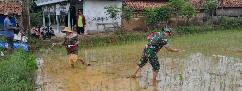 Tingkatkan Ketahanan Pangan, Babinsa Dampingi Petani Pemupukan Padi di Pamekasan