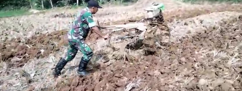 Guna mendukung program ketahanan pangan nasional pada percepatan masa tanam selain mendampingi poktan para Babinsa harus turun langsung membantu petani mulai dari pembajakan atau penyiapan lahan yang akan ditanami, pembibitan sampai dengan nanti saat panen.