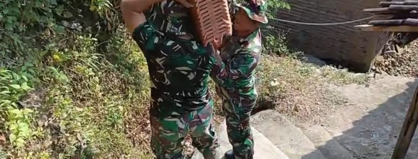 Madiun, 28 Juli 2025 – Anggota Satuan Tugas TNI Manunggal Membangun Desa (TMMD) ke-125 Kodim 0803/Madiun bersama warga Desa Ngranget, Kecamatan Dagangan, bahu-membahu melangsir material bangunan secara manual untuk merenovasi Rumah Tidak Layak Huni (RTLH) milik Bapak Jumiran, salah satu warga setempat.