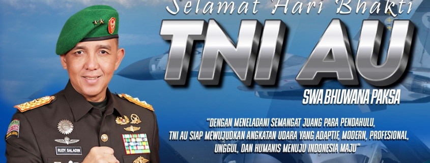 Dengan meneladani semangat juang para pendahulu, TNI AU siap mewujudkan angkatan udara yang adaptif, modern, profesional, unggul, dan humanis. Mewujudkan Indonesia maju melalui kekuatan udara yang tangguh dan profesional. Swa Bhuwana Paksa …