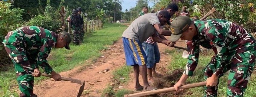 TNI Berbakti, Satgas Yonif 511/DY Bersama Warga Perbaiki Jalan Perkampungan