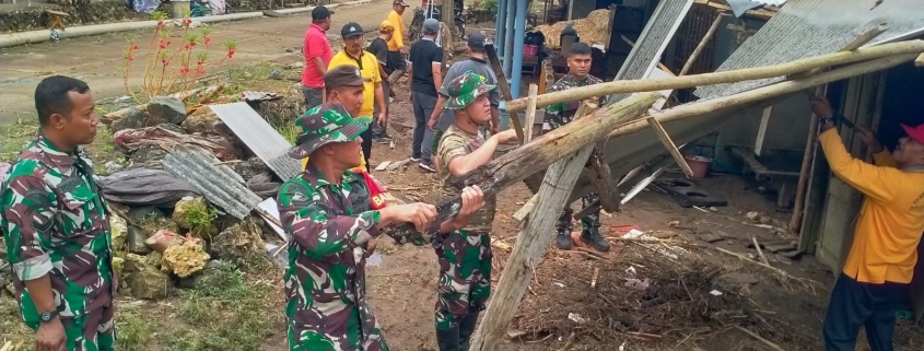 TNI dan Forkopimcam Pucanglaban Tangani Pascabanjir dan Salurkan Bantuan Warga