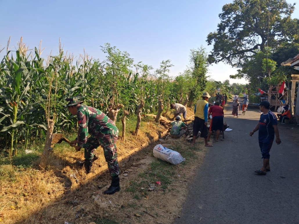 Sejak pukul 07.00 WIB, semangat gotong royong sudah terasa. Warga setempat bersama Babinsa bahu-membahu merapikan jalan dusun, membersihkan selokan, hingga menata lingkungan agar lebih bersih dan sehat. Suasana penuh keakraban terlihat, canda tawa masyarakat menyatu dengan semangat kerja yang guyub.