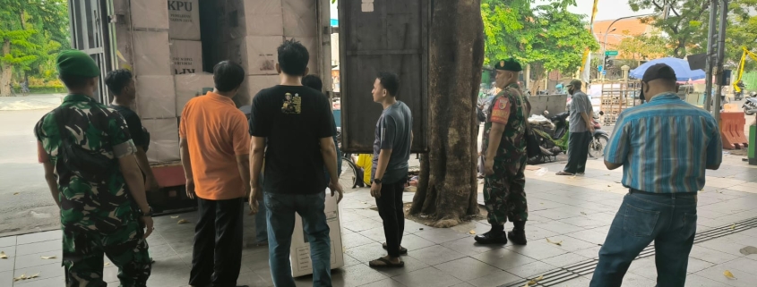 SURABAYA,– Danramil 0831/02 Tambaksari, Mayor Inf Sumarji, bersama Tiga Pilar Kecamatan Tambaksari, melaksanakan pengamanan pengembalian logistik Pemilihan Kepala Daerah (Pilkada) 2024. Logistik dikembalikan dari Gudang PPK Kecamatan Tambaksari di GOR 10 November, Jalan Tambaksari, ke Gudang KPU di Jalan Margomulya No. 11A, Kecamatan Tandes, Surabaya.