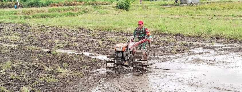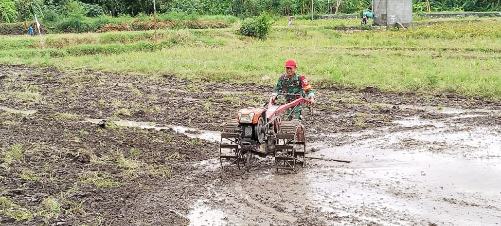Kegiatan pendampingan membajak sawah dengan menggunakan traktor yang dilaksanakan Babinsa Serka M Zainul Abidin adalah cara lebih cepat membantu petani untuk menyuburkan tanah.