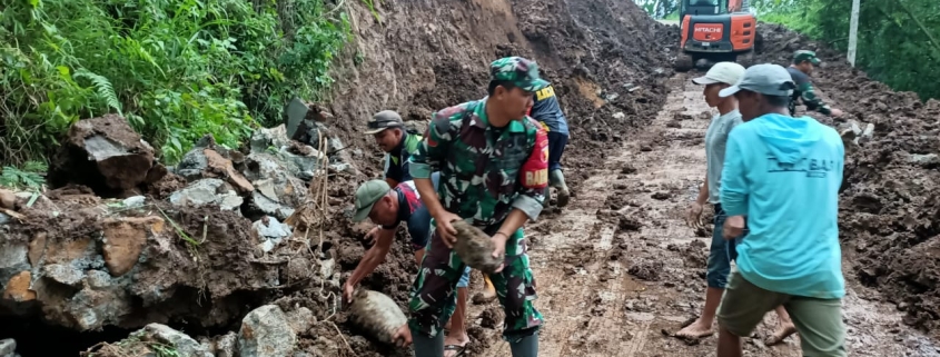 Koramil 0815/16 Pacet Kodim 0815/Mojokerto bersama Pemerintah Desa Sajen dan masyarakat serta relawan segera merespon kejadian tersebut dengan melakukan koordinasi untuk melakukan pembersihan material longsor pada Sabtu (07/12/2024) pagi.
