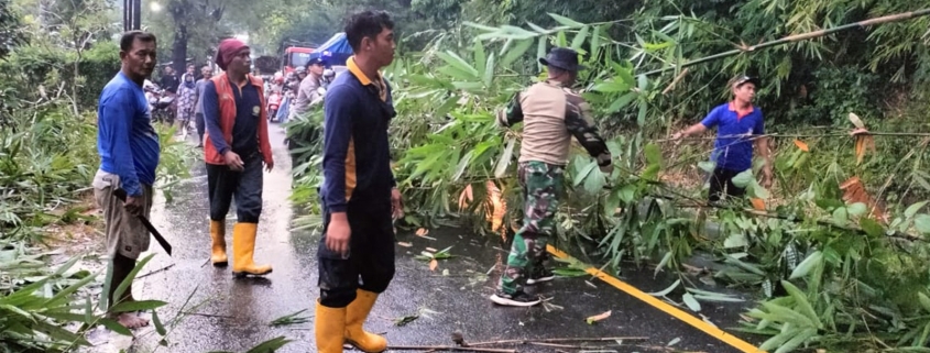 Peristiwa terjadi akibat cuaca ekstrem sejak pukul 15.30 WIB hingga 17.00 WIB yang mengakibatkan tanah di tepi jalan menjadi labil. Tiupan angin kencang memperparah kondisi hingga bambu tumbang melintang dan membahayakan pengguna jalan.