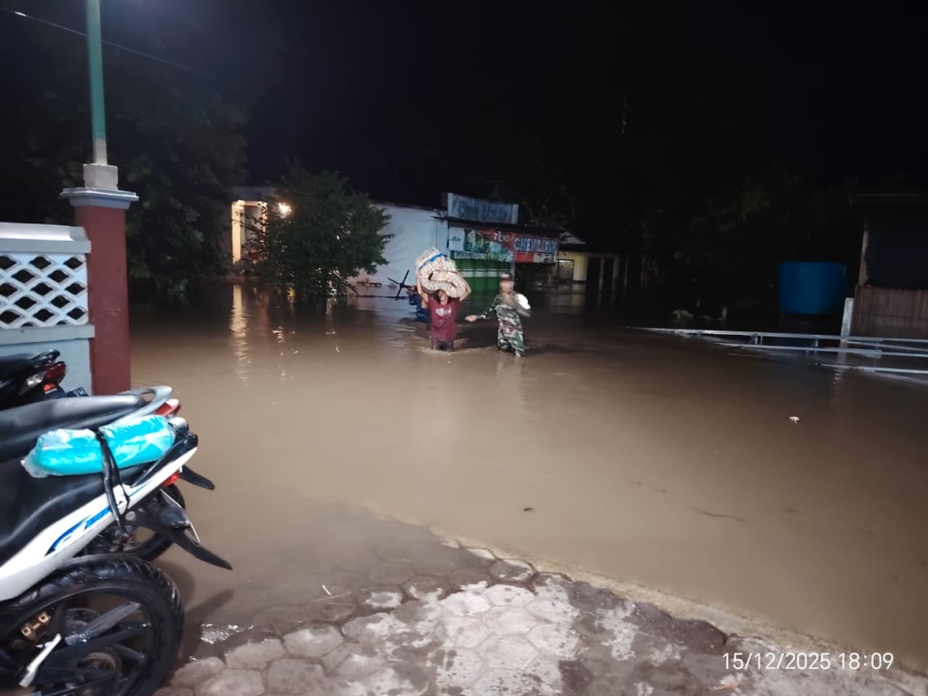BANYUWANGI – Hujan deras dengan intensitas tinggi yang mengguyur wilayah Kecamatan Muncar, Kabupaten Banyuwangi, Selasa (16/12/2025), menyebabkan Sungai Damsingir meluap dan merendam ratusan rumah warga di Desa Tapanrejo, Kedungrejo, dan Kedungringin dengan ketinggian air mencapai satu meter di sejumlah titik.