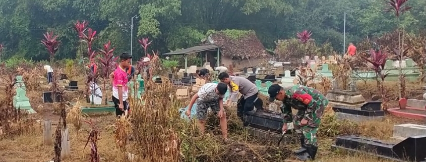 TNI-Polri dan Warga Nglongsor Bersinergi Bersihkan Tempat Pemakaman Umum