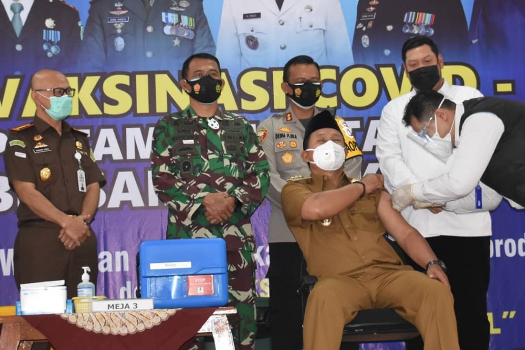 Kota Madiun melakukan vaksinasi Covid-19 perdana atau untuk pertama kalinya. Danrem 081/DSJ, Kolonel Inf Waris Ari Nugroho SE M.Si bersama Walikota Madiun, H. Maidi dan Forkopimda lainnya meninjau pelaksanaan proses vaksinasi yang diselenggarakan di RSUD Kota Madiun, Jl. Campur Sari No.12B, Sogaten, Kec. Manguharjo, Kota Madiun, Jawa Timur, Rabu (27/1/2021).