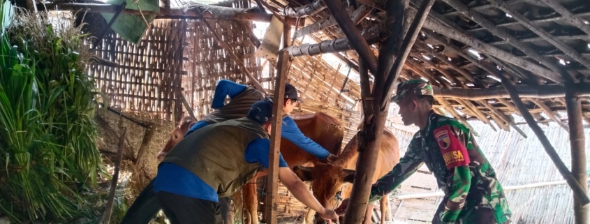 Lamongan,- Dalam rangka pencegahan penyebaran Penyakit Mulut dan Kuku (PMK) pada hewan ternak, Batuud Koramil 0812/05 Kembangbahu jajaran Kodim 0812/Lamongan, Serma Sahrizal bersama anggota Koramil 0812/05 Kembangbahu dan Polsek Kembangbahu serta Muspika dan dinas peternakan Kec Kembangbahu memberikan pendampingan vaksinasi PMK di Desa Kaliwates, Kecamatan Kembangbahu, Kabupaten Lamongan, Minggu (23/02/2025).