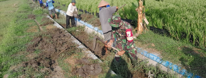 Madiun – Babinsa Desa Bulu, Koramil Tipe B 0803/10 Pilangkenceng, Serma Mulyono, bersama warga masyarakat melaksanakan kerja bakti pembersihan saluran irigasi di area persawahan Desa Bulu, Kecamatan Pilangkenceng, Kabupaten Madiun, pada Sabtu (28/12). Kegiatan ini dilakukan sebagai upaya meningkatkan fungsi saluran irigasi untuk mendukung produktivitas pertanian di wilayah tersebut.