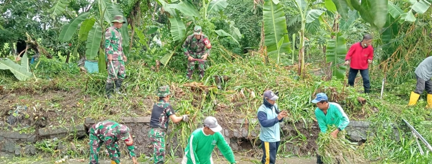 Warga Desa Pulungan Bersama Koramil 0816/18 Sedati Bersihkan Aliran Sungai