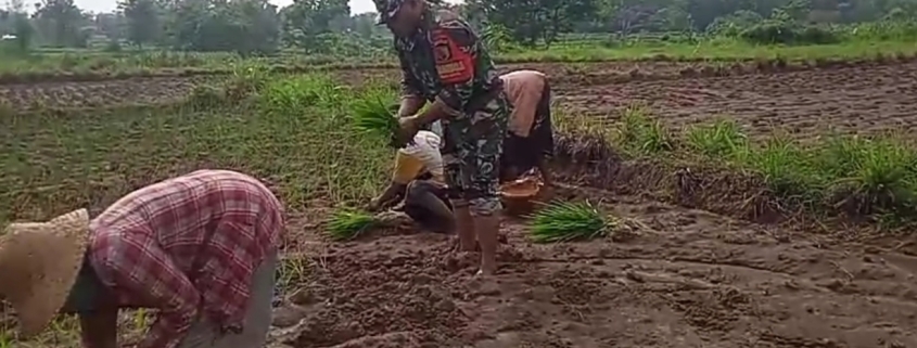 PAMEKASAN,– Dalam upaya mendukung program ketahanan pangan dan meningkatkan kesejahteraan masyarakat, Babinsa Desa Rangperang Laok, Koptu Syarif Effendi, menunjukkan komitmen besar terhadap sektor pertanian. Salah satu bentuk dukungan nyata tersebut terlihat saat ia bersama warga melaksanakan penanaman padi di sawah tadah hujan milik Sumiati yang terletak di Dusun Selatan, Desa Rangperang Laok, Kecamatan Proppo.