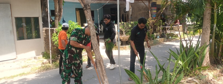 PAMEKASAN – Babinsa Kelurahan Patemon, Serka Madrikah, menggelar kegiatan komunikasi sosial (komsos) sekaligus aksi bersih-bersih lingkungan bersama warga di RT 05 RW 02, Kelurahan Patemon, Kecamatan Pamekasan.