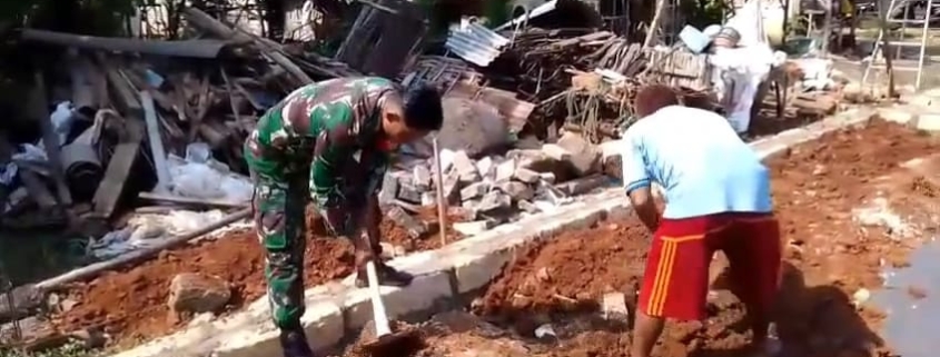 Wujud Nyata Binter, Babinsa Koramil Pegantenan Bantu Warga Tebul Timur Dalam Pembangunan Rumah